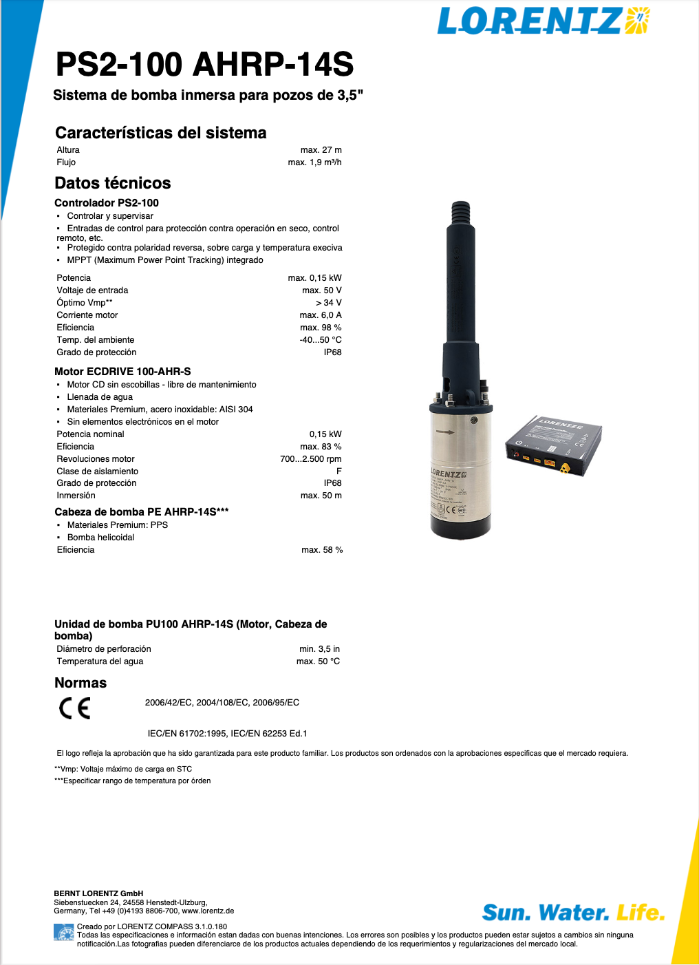 SISTEMA DE BOMBEO SOLAR MARCA LORENTZ PS2-100 AHRP-14S