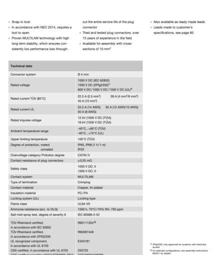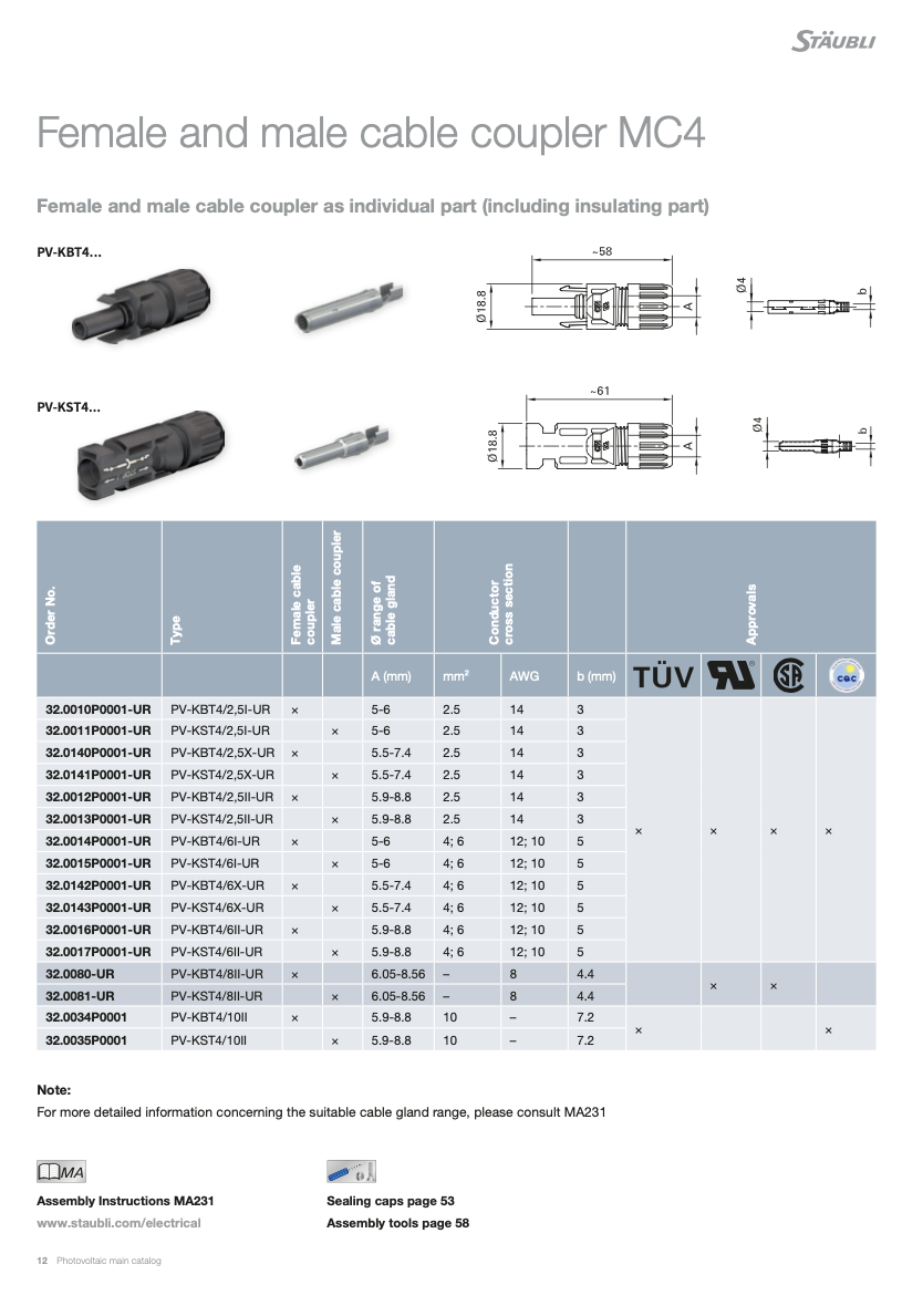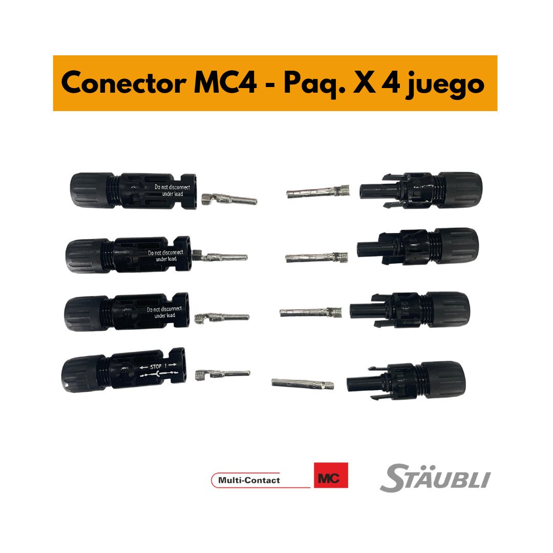 Juego de Conectores MC4 macho hembra Multicontact 4/6 mm2 marca Staubli certificado RETIE paq X 4 juegos. Incluye envío.