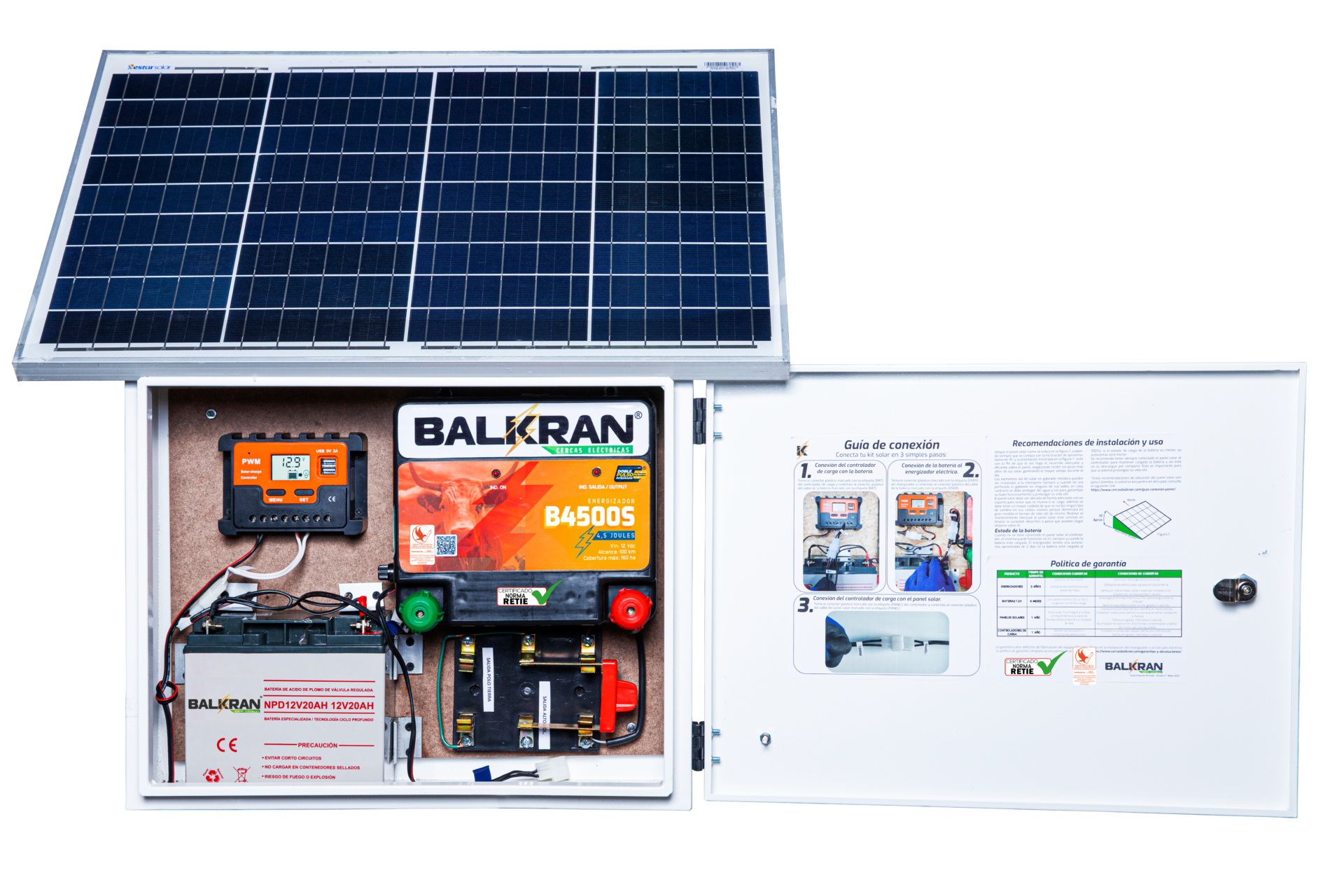Energizador B4500S Gabinete Metálico Batería 12V 35A Regulador 10A** Panel Solar 60W** Cuchilla doble tiro Conexiones internas