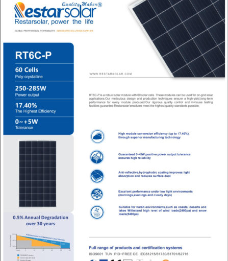 Panel solar de 150 Wp Policristalino marca Solartech Ref DXP6-36P-150W.